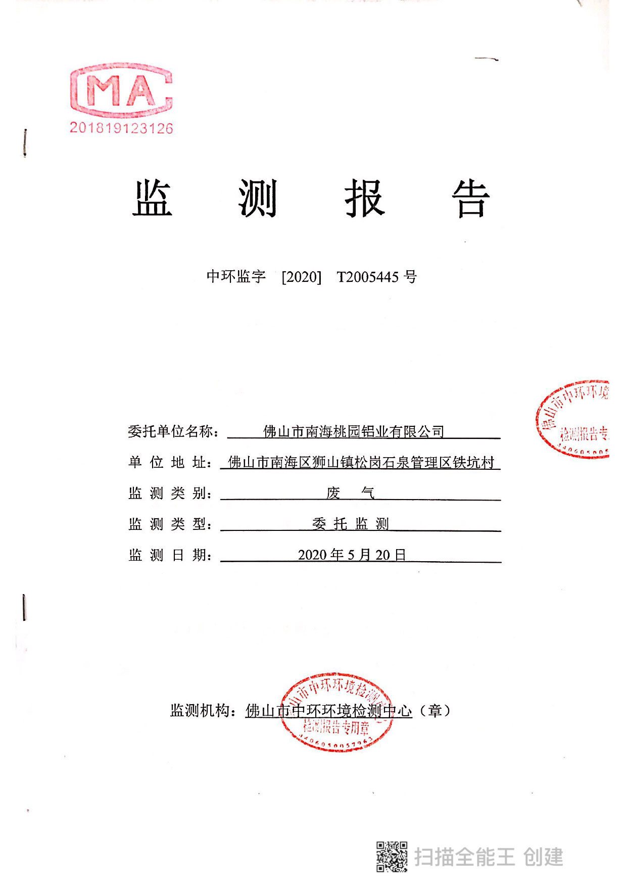 桃園鋁業(yè)2020年5月-1監(jiān)測報告